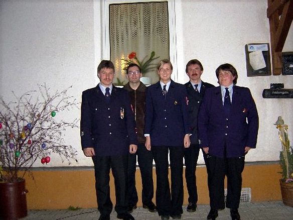 Im Bild von links:Kommandant Konrad Kolb, Christian Helm, Martina Fischer, 1. Vorsitzender, Gerhard Fischer und Erna Helm