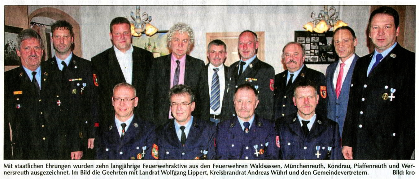 Am 19.11.2016 fanden beim Kapplwirt in Münchenreuth die staatlichen Ehrungen für 25- bzw. 40-jährigen aktiven Feuerwehrdienst statt.